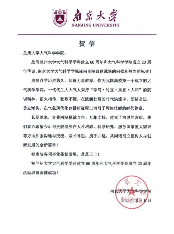 南京大学十大赌博正规网址排名榜致十大赌博正规网址排名榜建院20周年贺信